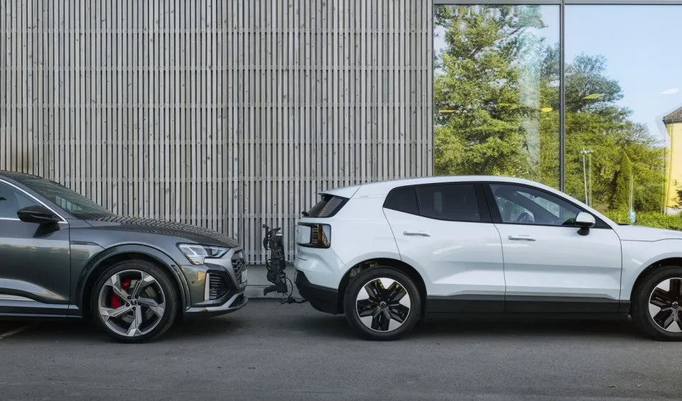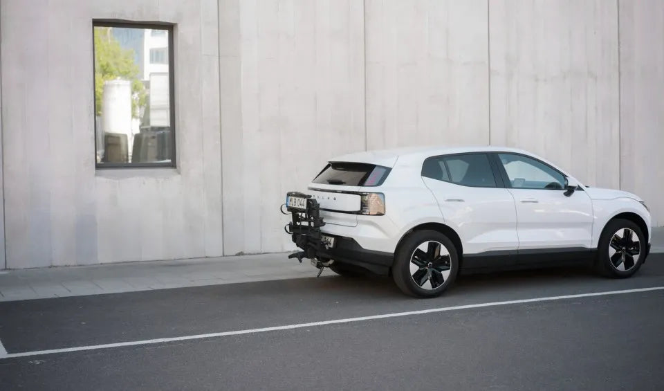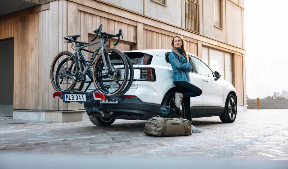 Tilts up towards the car when parked, making it ideal for urban use. Note: The bike carrier must not be driven in the upright position; this feature is for parking only